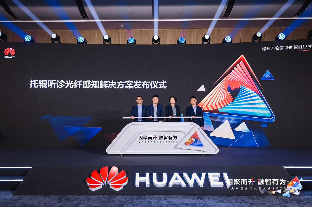 中国,深圳,2026年3月20日,华为中国合作伙伴大会2026期间,华为联合海螺水泥旗下安徽海螺智质公司发布托辊听诊光纤感知方案,赋能带式运输机智能化巡检。